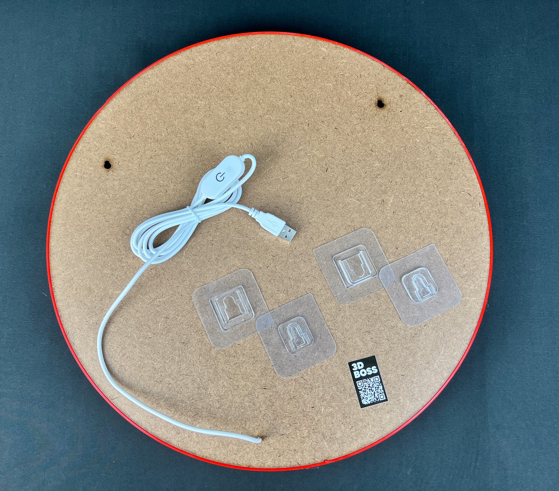 • Kit di montaggio a parete tramite ganci biadesivi e eventuali fori nel retro per l’applicazione a muro tramite normali chiodi.